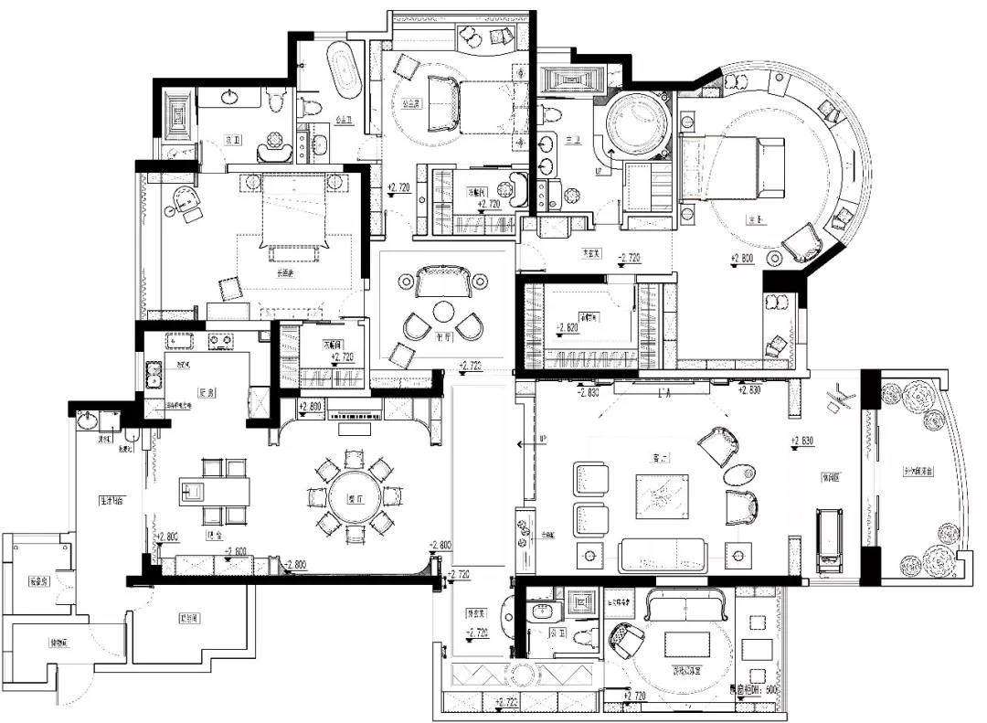 主人房是一套包含有書房,衣帽間,衛生間的套房氣派與藝術于生活之中