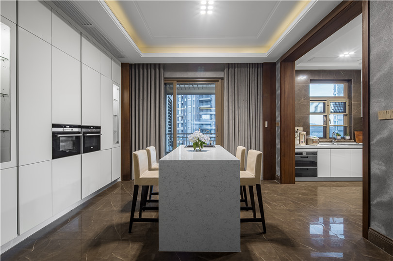 靠近生活陽臺的西餐臺,家人朋友在此,或圍坐聊天,或飲酒淺酌,既溫馨又不乏生活情趣,可謂一半煙火,一半清歡。